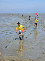 5-km-Läufer bei mäßiger Temperatur und bewölktem Himmel wieder am Strand entlang, die 10-km-Läufer durchquerten dann bei strahlendem Sonnenschein und 24 °C zusätzlich eine knapp 6 km lange Passage durchs Watt. Wer sich durch das dieses Jahr besonders schlickige Watt im strandnahen Bereich gekämpft hat, wurde mit einer wunderschönen Passage am Meer entlang belohnt.